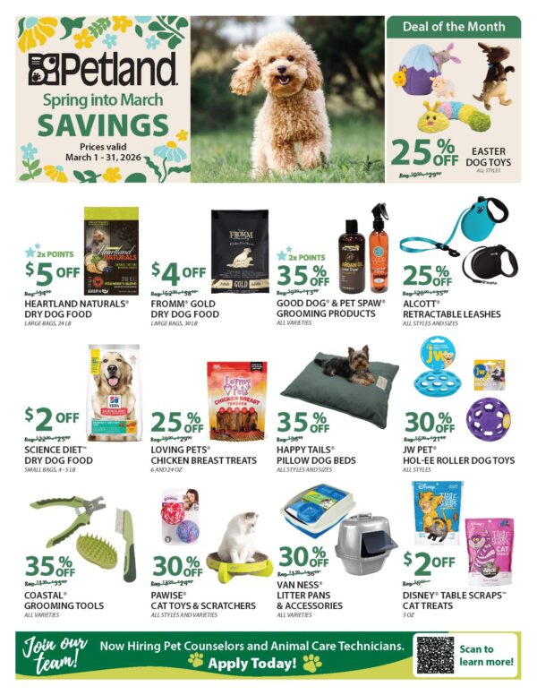 We have specials for all types of pets. Come on in and start saving today!